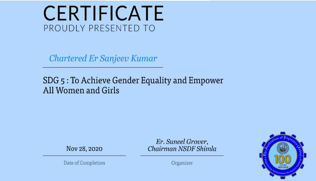 I got scholarship of Rs. 700/- for my achievement in Pre University [Non-medical] in DAV College, Jalandhar City & secured 100/100 marks in Trigonometry. I gave all my money to my mother and I took only Rs. 100 for myself. Then I did A.M.I.E [India] from The Institution of Engineers {India}, Kolkata. Then got authorisation from the same Institution to use the style & title of Chartered Engineer [India] on 10.11.2004. During service, I joined M.Tech. {Electrical Drives & Systems} at Guru Nanak Dev Engineering College in Ludhiana & secured top scores in the toughest subject of M.Tech. {Electrical Engineering} viz Advanced Power System Analysis (89/150) & everybody in the class clapped for me i/c the Lady Professor. Then I was very pleased during those moments and I relish those moments still now.